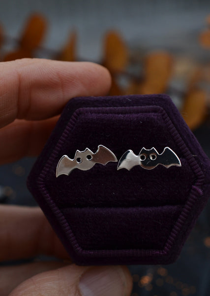 These sterling silver bat stud earrings are the perfect pair of earrings for that spooky feeling day. These studs will become your fave everyday earring.
