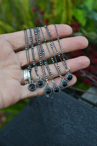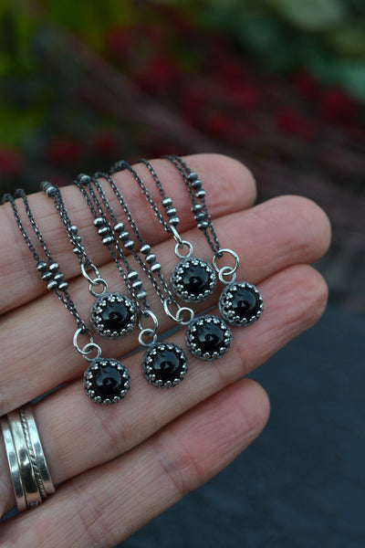 A small agate cabochon is captured in a beautifully delicate crown setting, a perfect little charm necklace to layer with your other favorites