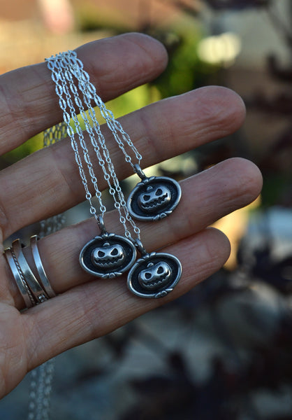 You are purchasing ONE small jack-o-lantern charm necklace. There are multiples shown in photos for visual appeal.