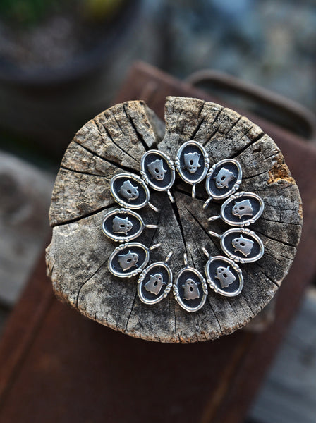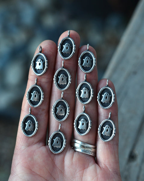 These charms were fabricated by Nicole and then cast in sterling silver. Your charm will be strung on an 18" chain.