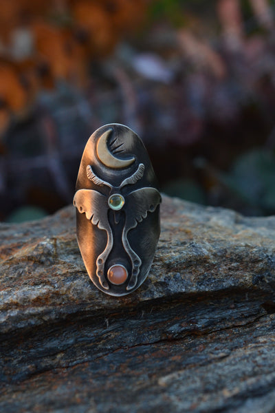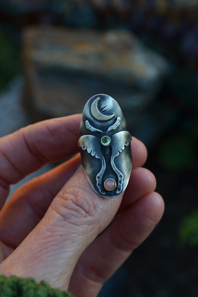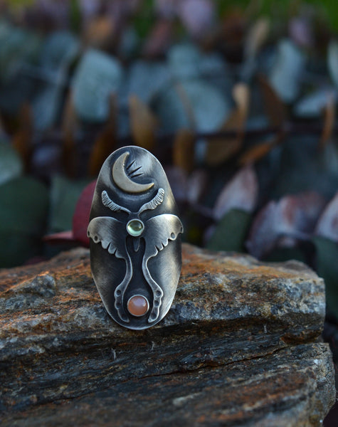 Hand cut Sterling Silver, Peridot and Peach Moonstone