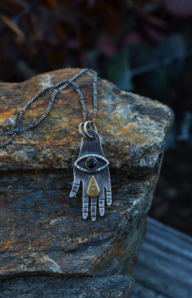 Crying Eye Hand Charm - Black Onyx - 18" Chain Included – Arrok Jewelry