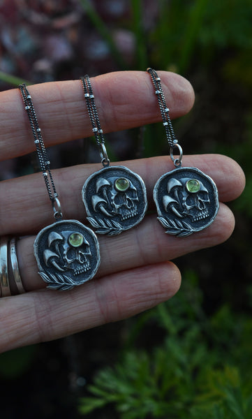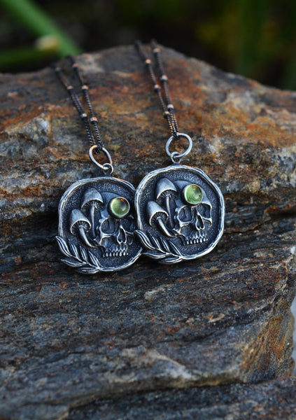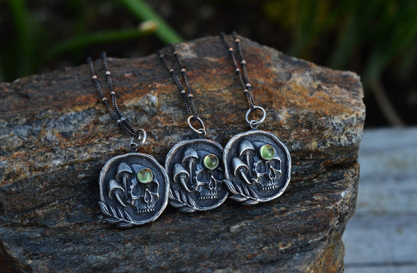 Death in the Forest - Peridot - Mushroom/Skull Charm - Chain Included – Arrok Jewelry