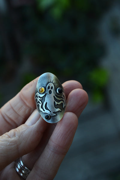 A little info regarding the fit of saddle style rings: Saddle rings fit more snug than regular rings due to the wider band and the overall amount of metal that is touching your finger. I give about a 1/4-1/2 size variance on all saddle rings due to knuckle differences and your fingers swelling while wearing it.